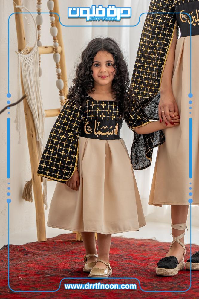 بتصميم ساحر يمزج بين الفخامة والروح الرمضانية، يأتي هذا الفستان بلون أسود عميق واللون البيج الهادئ يرمز إلى سحر ليالي رمضان، مزينًا بنجوم رمضان باللون الذهبي ، ليمنح صغيرتك إطلالة مشرقة ومميزة.
